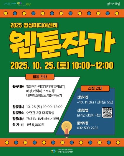 부평 거주 또는 재학 중인 13~16세 청소년을 대상으로 진행하는 이번 특강은 미디어 분야 직업인 웹툰 작가에 대해 알아보고, 웹툰을 제작해보는 실습 과정으로 구성됐다.