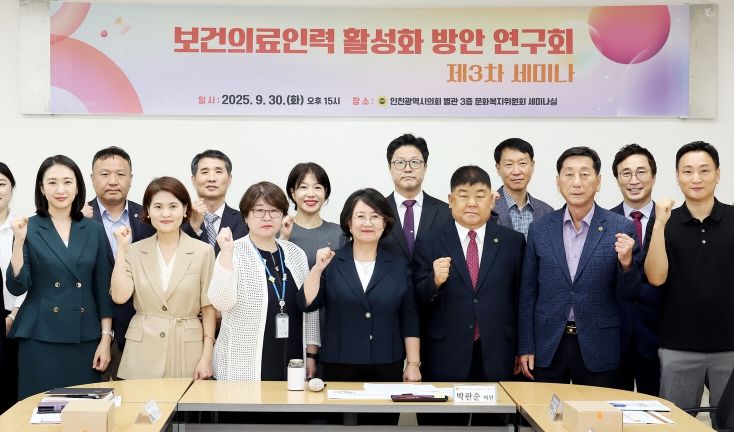 한방통신사 신유철기자 기자 | 인천광역시의회 의원연구단체인 ‘보건의료인력 활성화 방안 연구회’는 30일 문화복지위원회 세미나실에서 박판순 대표의원(국·비례)을 비롯해 박창호(국·비례)·이봉락(국·미추홀구3) 의원, ‘의료기사단체 정책연구단’관계자 등이 참석한 가운데 ‘제3차 정책 세미나’를 개최했다.