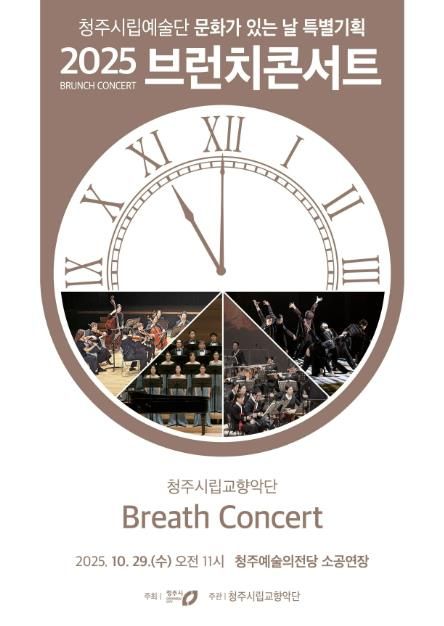 한방통신사 권영분기자 기자 | 청주시립교향악단은 오는 29일 오전 11시 청주예술의전당 소공연장에서 ‘브런치콘서트–Breath Concert’를 공연한다.