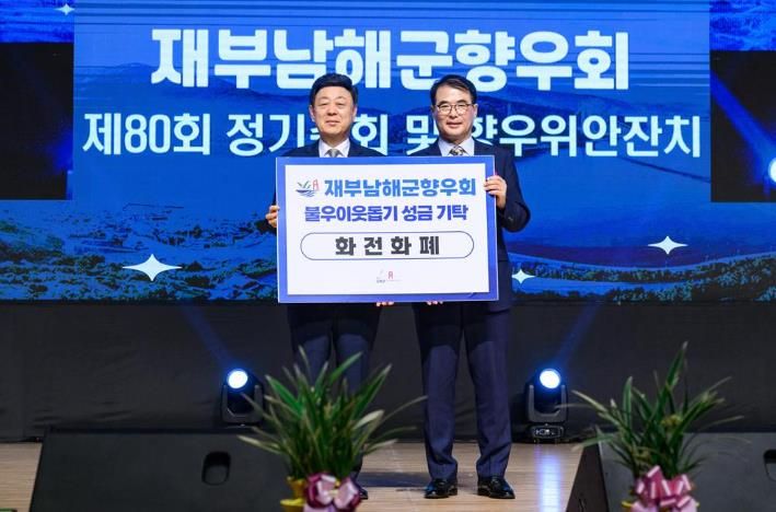 이번 성금은 지난 21일 제80회 재부남해군향우회 정기총회에서에서 불우이웃돕기 성금을 모아 기탁된 것으로, 지역 사회복지시설 9개소에 전달됐다.