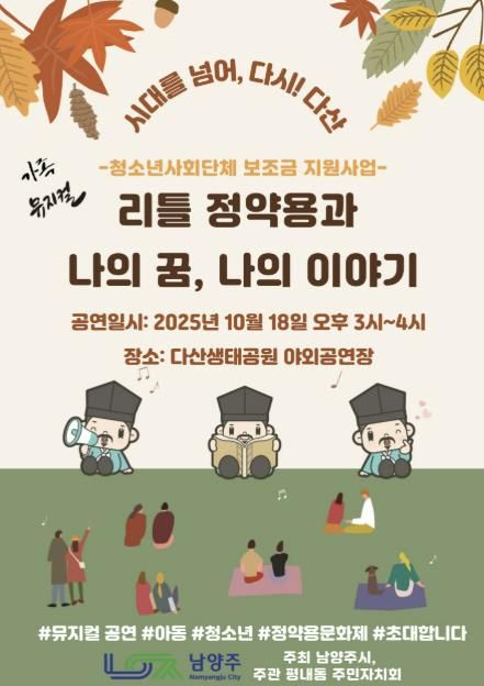 한방통신사 신유철기자 기자 | 남양주시는 오는 10월 18일 조안면 다산생태공원에서 아동·청소년 대상 가족뮤지컬인 ‘리틀 정약용’을 선보인다.