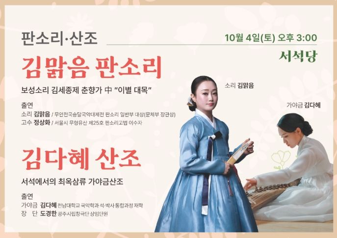 한방통신사 김성의 기자 | 광주문화재단 전통문화관은 오는 10월 4일 오후 3시, 제21회차 토요상설공연을 선보인다.