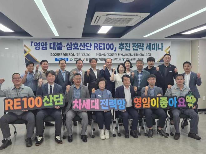 한방통신사 신다은기자 기자 | 영암군이 9/30일 한국산업단지공단 전남서부지사에서 ‘대불·삼호산단 RE100 추진 전략 세미나’을 개최했다.