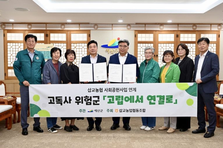 한방통신사 신태공 기자 | 예산군은 삽교농협(김종래 조합장)과 저소득 고독사 고위험 가구를 위한 ‘고립에서 연결로 시범사업’ 업무협약을 체결했다고 1일 밝혔다.