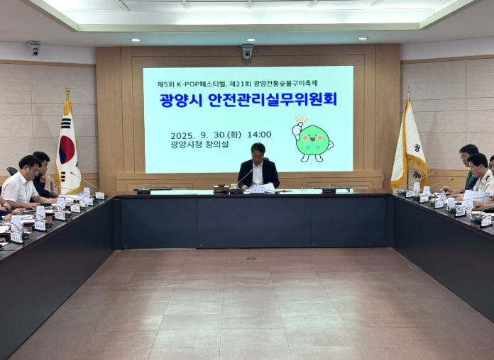 이번 위원회에는 광양경찰서, 광양소방서, 광양교육지원청, 한국전기안전공사 등 유관기관과 관련 부서, 축제 관계자 등 20여 명이 참석해 ▲10월 17~18일 광양공설운동장에서 열리는 제5회 광양 K-POP 페스티벌 ▲10월 24~26일 광양읍 서천체육공원 일원에서 열리는 제21회 광양전통숯불구이축제의 안전관리계획을 분야별로 점검했다.