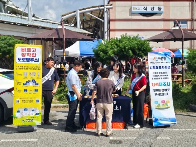 한방통신사 신다은기자 기자 | 전남 무안군은 2025년 추석 명절을 맞이하여 29일 오전 무안전통시장을 찾아 지역 주민들과 시장 방문객들을 대상으로 지적재조사사업 및 도로명주소 합동 홍보를 실시했다.