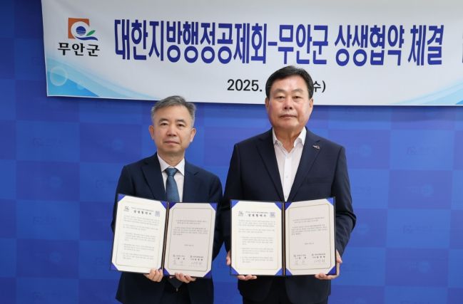 김산 군수와 김장회 대한지방행정공제회 이사장이 함께한 이번 협약은 상호 신뢰를 바탕으로 무안군 공무원들의 복지 향상과 생활 안정을 위해 협력하고 양 기관의 상생협력을 도모하고자 체결됐다.