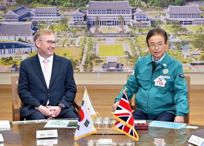 한방통신사 신유철기자 기자 | 이철우 경상북도지사는 3일 도청을 방문한 콜린 크룩스(Colin Crooks) 주한 영국대사 내외와 만나, 경주 APEC 정상회의의 성공적 개최 협력 방안과 함께 산업·문화·교육 등 다양한 분야의 교류 확대를 논의했다.