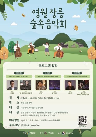 한방통신사 양호선기자 기자 | 영월군은 오는 10월 12일, 18일, 25일 오후 3시부터 5시까지 세계유산 장릉 경내에서 ‘영월 장릉 숲속 음악회’를 개최한다.