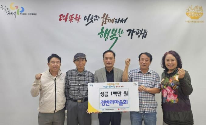 한방통신사 신유철기자 기자 | 가평군 가평읍은 최근 경반리 마을회에서 취약계층 이웃을 돕기 위해 성금 100만 원을 기탁했다고 밝혔다.
