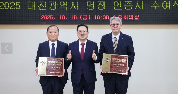 한방통신사 신태공 기자 | 대전시는 10일 시청 중회의실에서 2025년‘대전광역시 명장’으로 선정된 2명에게 인증서와 인증패를 수여했다.