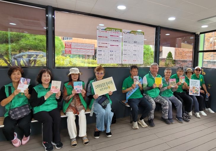 한방통신사 신유철기자 기자 | 효령면 새마을회가 버스를 기다리는 주민들을 위해 스마트승강장 내 책꽂이에 도서를 기증하며 따뜻한 정서지원 활동을 이어가고 있다.