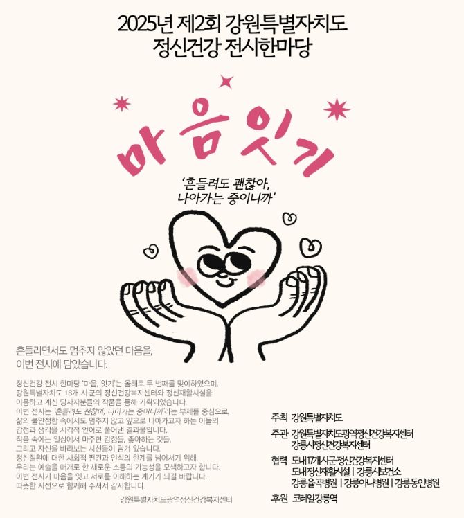 한방통신사 양호선기자 기자 | 강릉시는 10월 13일부터 오는 19일까지 강릉역에서 '2025년 제2회 정신건강 전시한마당'을 개최한다.