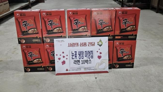 한방통신사 신유철기자 기자 | 동두천시 상패동 행정복지센터는 눈꽃 냉삼 미성집이 관내 저소득 가구를 위해 라면 10박스를 기탁했다고 밝혔다.