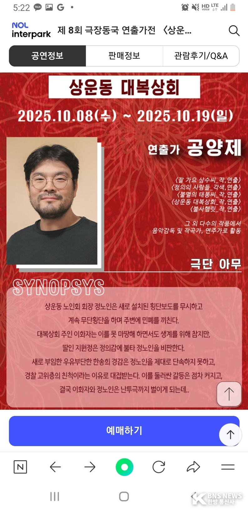 지난 추석 명절 끝자락 10.12(일). 오후 4시 대학로 동국극장에서 "상운동 대복상회" 연극을 관람했다.
