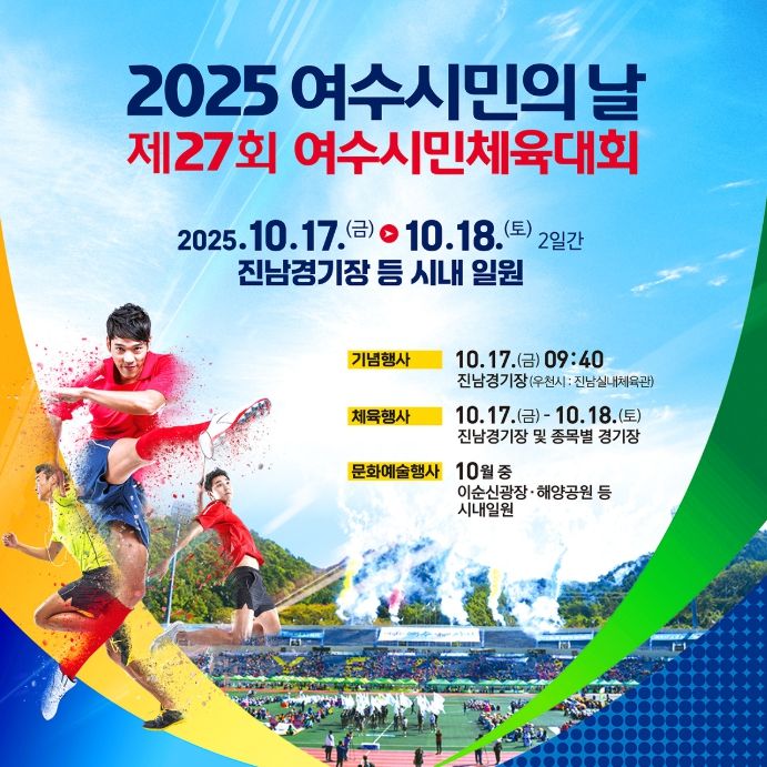한방통신사 신다은기자 기자 | 여수시는 오는 10월 17일(금)부터 18일(토)까지 이틀간 진남경기장 일원에서 ‘2025 여수시민의 날’ 기념행사를 개최한다.