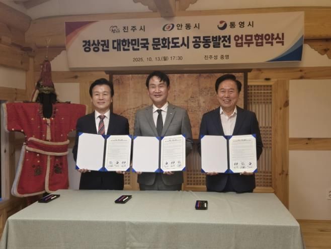 한방통신사 신유철기자 기자 | 경상권을 대표하는 대한민국 문화도시 통영시, 진주시, 안동시가 문화도시의 지속가능성과 상생협력을 위해 손을 맞잡았다.