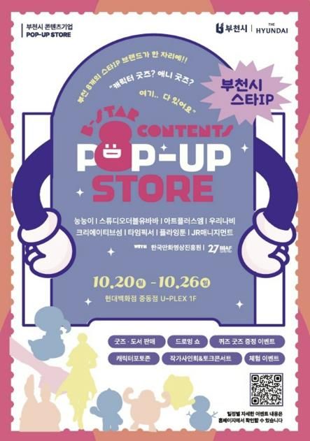 유성준 부천시 문화체육국장은 “이번 팝업스토어는 지역 콘텐츠기업이 보유한 IP를 시민이 직접 보고 즐기는 자리이자, 기업에는 새로운 판로를 모색할 수 있는 기회”라며 “지역 창작자와 기업이 시민과 함께 호흡하는 콘텐츠 생태계가 더욱 탄탄해지길 기대한다”고 말했다.