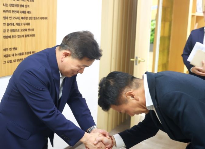 한방통신사 신유철기자 기자 | 박승원 광명시장이 송치영 포스코이앤씨 사장을 직접 만나 신안산선 공사현장 붕괴 사고로 시민 안전이 위협받는 상황에 대해 강력히 항의했다.