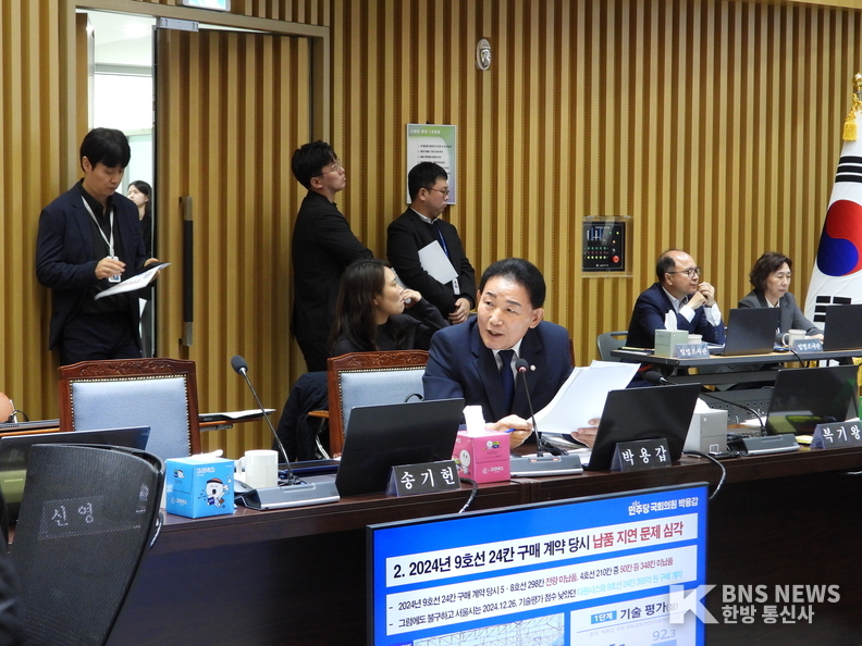 국회 국토교통위원회 더불어민주당 박용갑 의원(대전 중구)이 20일 서울시청에서 열린 서울특별시 국정감사에서 서울특별시와 다원시스 간의 9호선 전동차 구매 계약 과정의 문제점에 대한 감사원 감사 필요성을 주장했다.