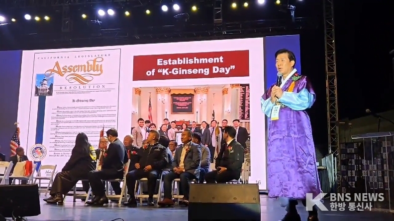 무대 중앙 대형 스크린에는 ‘Establishment of K-Ginseng Day’라는 문구와 함께, 캘리포니아 주의회가 공식 발의한 결의문(Assembly Resolution)이 공개됐다. 결의문에는 한국 금산 인삼의 역사와 효능, 그리고 전 세계 인삼 산업에서 차지하는 위상에 대한 상세한 설명이 담겨 있었으며, 캘리포니아 주의회가 매년 이를 기념일로 지정해 한국 인삼 문화를 알릴 것을 명시했다.