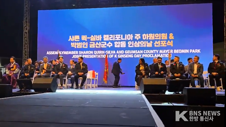 지난 10월 19일(현지 시각) 미국 캘리포니아주 로스앤젤레스에서 열린 ‘제52회 로스앤젤레스 한인축제’ 메인 무대에서, 샤론 퀵-실바(Sharon Quirk-Silva) 캘리포니아주 하원의원과 박범인 금산군수가 함께 ‘K-Ginseng Day(케이 인삼의 날)’ 선포식을 거행했다.
