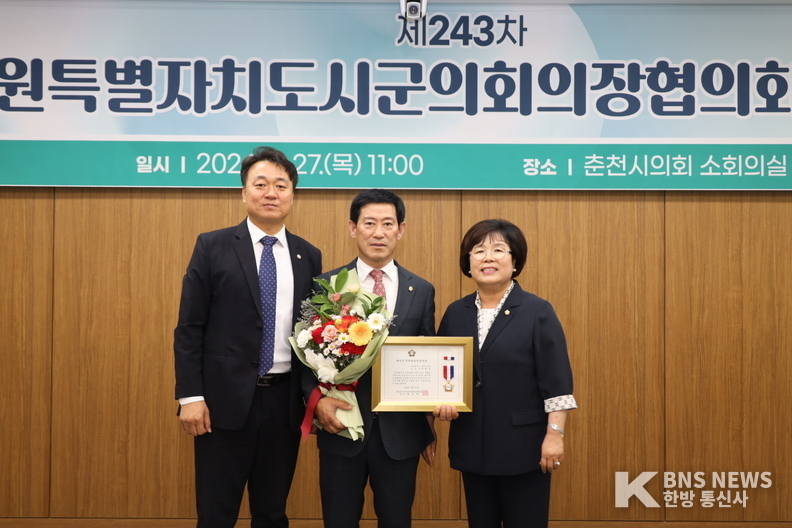 삼척시의회 양희전 부의장이 지난 27일 대한민국시군자치구의회의장협의회로부터 “대한민국 지방의정봉사상”을 수상하였다.