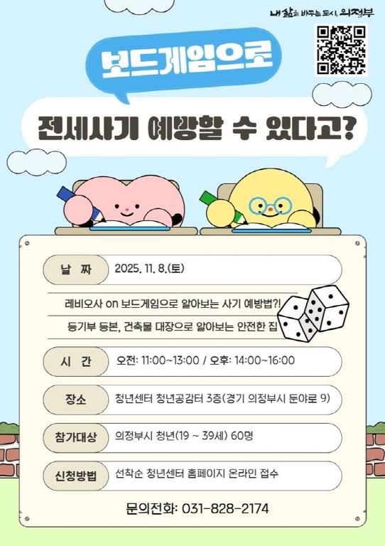 한방통신사 신유철기자 기자 | 의정부시는 11월 8일 운영 예정인 전세사기 피해 예방 교육용 보드게임 프로그램 ‘레비오사 보드ON’에 참여할 청년을 모집한다.