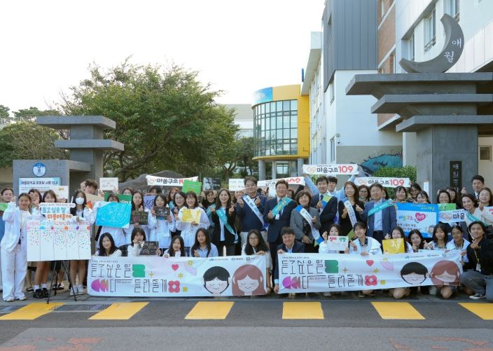 이번 캠페인은 학생동아리 ‘또래심리학부’ 학생들이 직접 기획·준비한 것으로 학생들이 평소 듣고 싶었던 격려의 말을 선택하면 학생, 보호자, 교직원 모두가 그 말을 나누며 등굣길을 ‘칭찬 샤워’로 채우는 참여형 행사로 진행됐다.