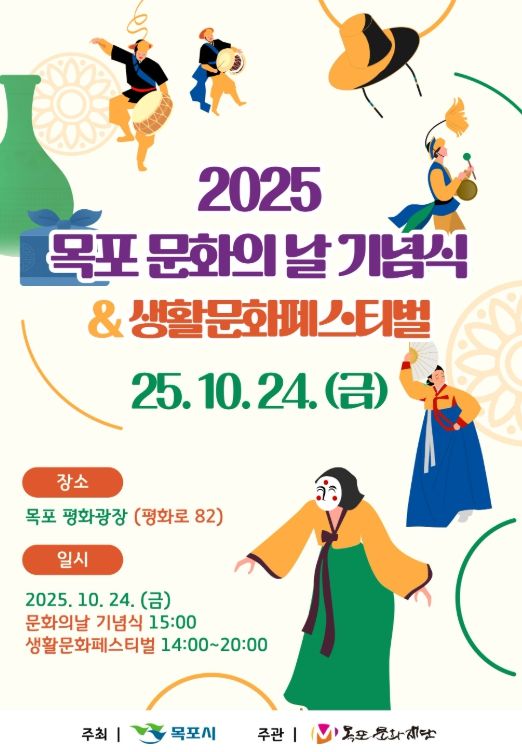 한방통신사 신다은기자 기자 | 목포문화재단은 오는 10월 24일 오후 2시 평화광장에서 ‘2025 목포 문화의 날 기념식 및 생활문화페스티벌’을 개최한다.