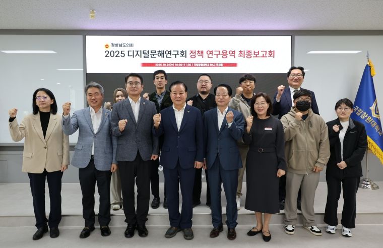 한방통신사 신유철기자 기자 | 경상남도의회 의원 연구단체인 ‘디지털문해연구회(회장 박남용 의원)’는 지난 22일 국립창원대학교 욱재홀에서 '경상남도 디지털 소외 계층을 위한 맞춤형 미디어교육 프로그램 개발 연구' 정책연구용역의 최종보고회를 개최했다.