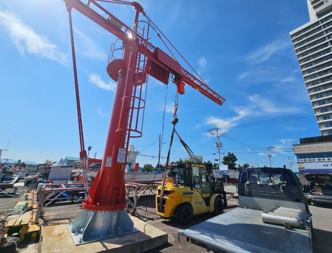 이번에 설치된 소형어선 인양기는 5톤 미만의 소형어선을 육지로 신속하게 인양할 수 있는 장비로, 태풍 등의 기생 재해로부터 어선을 보호해 재산 피해를 줄이는데 효과적이다.