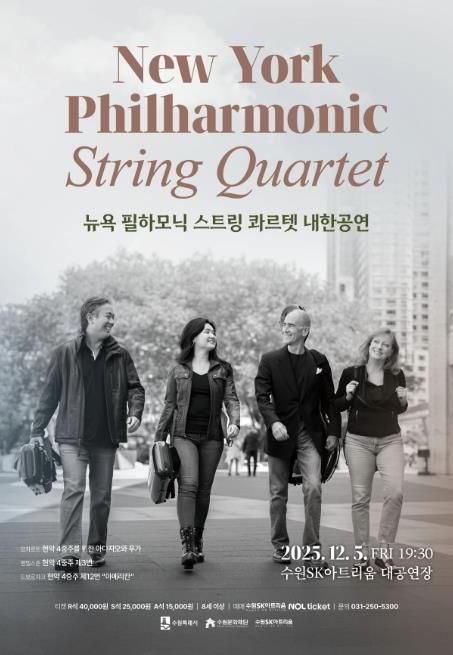 한방통신사 신유철기자 기자 | 수원문화재단은 오는 12월 5일 금요일 오후 7시 30분, 수원SK아트리움 대공연장에서 ‘뉴욕 필하모닉 스트링 콰르텟 내한공연’을 개최한다.