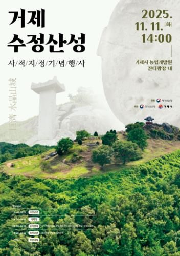 시는 수정산성 사적 지정을 기념하기 위해 오는 11월 11일 14시 거제농업개발원 잔디광장에서 행사를 진행하며, 이날 국가유산청에서 거제시에 지정서를 교부할 예정이다.