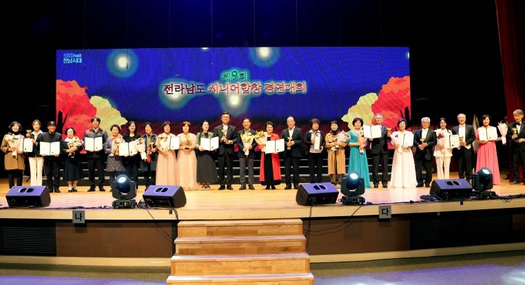 전라남도는 30일 도청 김대중강당에서 시니어합창단 25개 팀 1천여 명이 참여한 시니어 합창 경연대회가깊은 울림 전한 전남 시니어 합창단 경연대회 성료, 추가 보도자료입니다. 성황리에 막을 내렸다고 밝혔다.