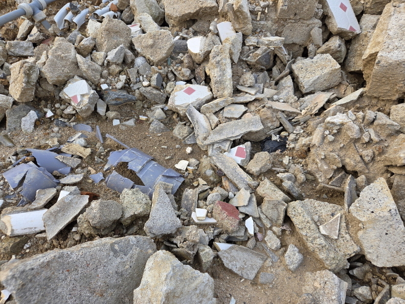 현장에서는 콘크리트 파편과 함께 스레이트 조각 등 석면 함유 가능성이 높은 폐기물이 다수 발견됐다. 석면 철거는 밀폐 및 습식 처리 등 엄격한 법적 절차를 따라야 하지만, 현장에서는 일반 폐기물과 뒤섞여 방치된 상태였다.