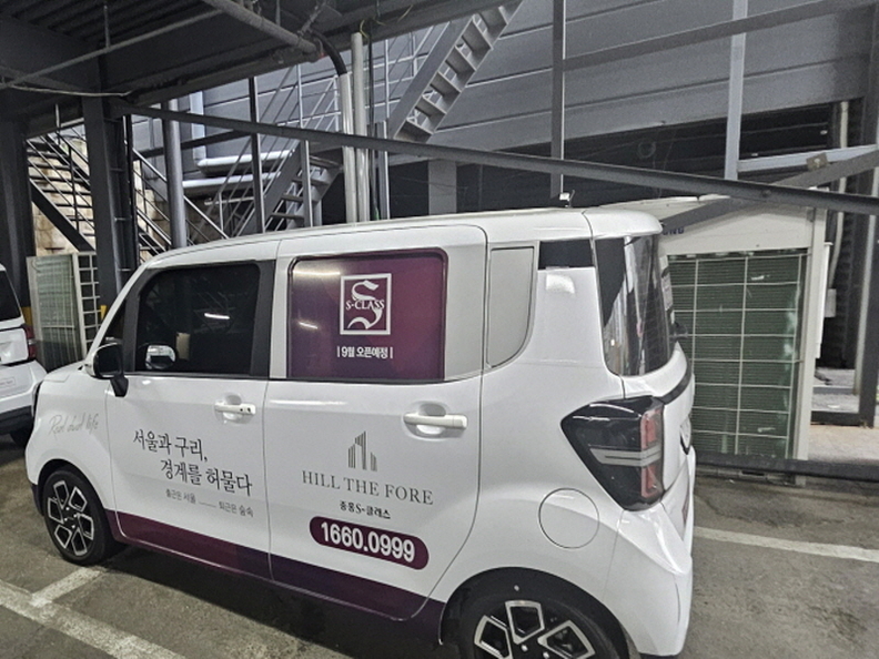 공사장 및 모델하우스 주변에는 여전히 ‘HILL THE FORE 중흥S-클래스’ 홍보판과 스탠드형 광고물이 도로를 점유한 채 설치되어 있었다. 특히 불법 광고물을 부착한 홍보차량이 방문객을 태워 이동하는 행태가 지속되며 교통안전 문제까지 제기되고 있다.