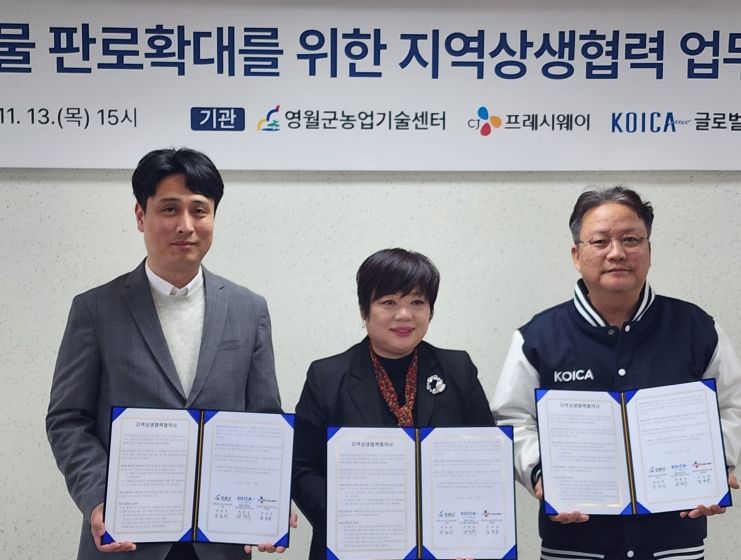 한방통신사 양호선기자 기자 | 영월군농업기술센터는 2025년 11월 13일 목요일 오후 3시, 영월군농업기술센터 2층 회의실에서 CJ프레시웨이, KOICA글로벌인재교육원과 함께 지역상생협력 업무협약을 체결했다.