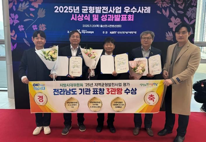 한방통신사 신다은기자 기자 | 전라남도는 대통령직속 지방시대위원회에서 주최하는 2025년 균형발전사업 우수사례 시상식에서 전국에서 유일하게 3개 부문을 모두 수상했다고 밝혔다.