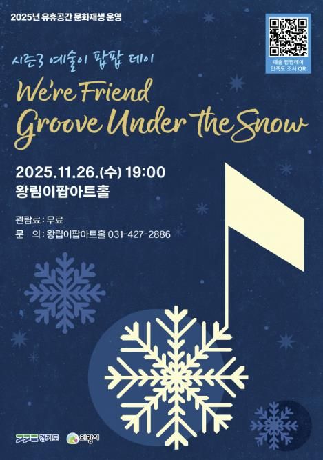윤은숙 의왕시 문화관광과장은 “We’re Friend의 이번 무대는 탭댄스와 재즈가 결합한 독창적인 공연으로, 겨울의 감성을 풍성하게 채워줄 것”이라며 “음악의 따뜻함과 생동감 넘치는 리듬을 현장에서 함께 즐겨주시길 바란다”고 전했다.