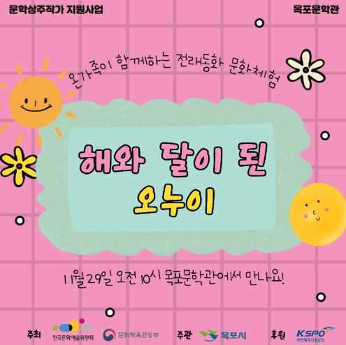 한방통신사 신다은기자 기자 | 목포시는 오는 11월 29일 오전 10시 목포문학관에서 ‘온가족이 함께하는 전래동화 문화체험’을 운영한다.