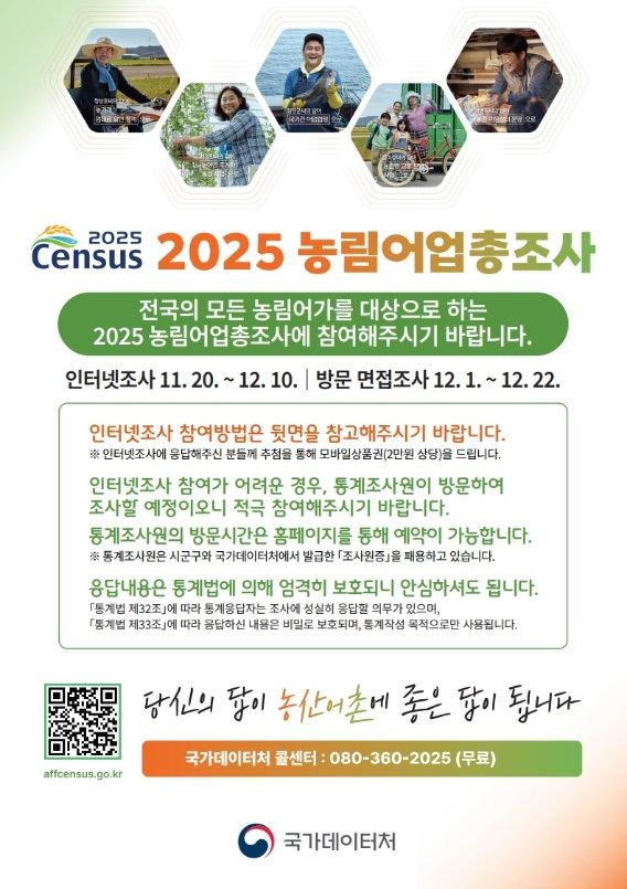 한방통신사 양호선기자 기자 | 강릉시는 11월 20일 목요일부터 오는 12월 22일 월요일까지 '2025 농림어업총조사'를 실시한다.