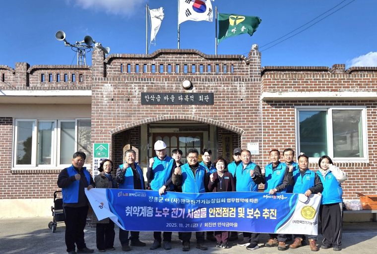 한방통신사 신다은기자 기자 | 장흥군과 (사)한국전기기능장협회(회장 유주식)은 21일 회진면 안삭금마을 찾아 노후 전기시설물 안전점검 및 보수 활동을 실시했다.