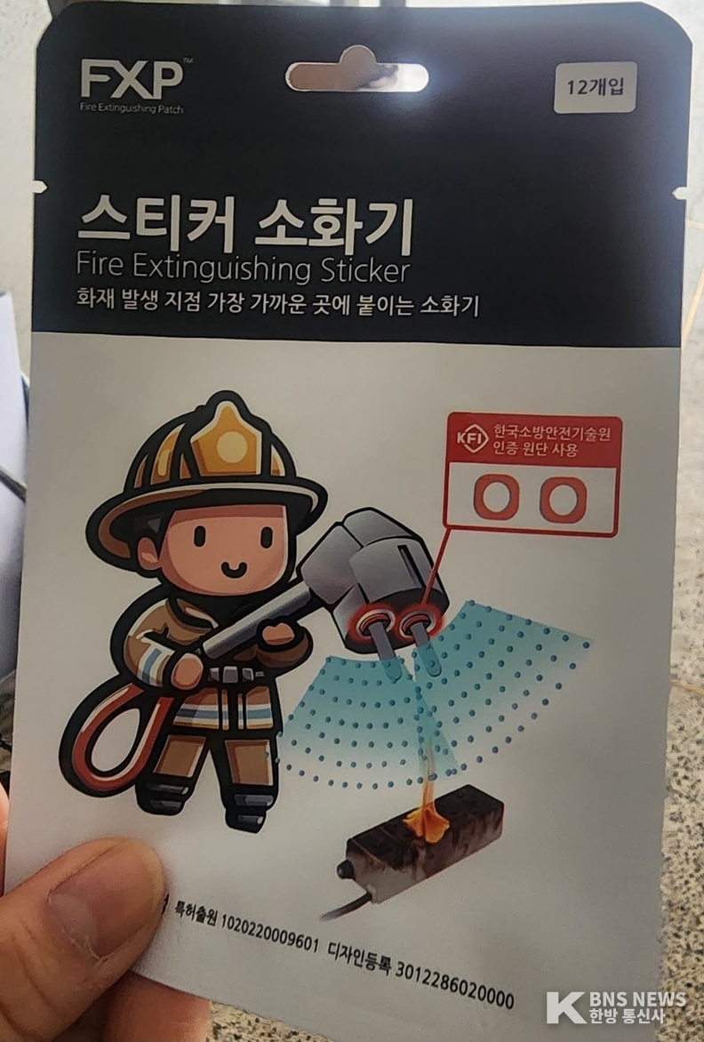 작은 소화기 스티커 패치 하나로 전기 화재가 발생시 큰 화재를 막을수있다.