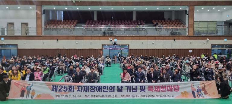 한방통신사 신유철기자 기자 | 구미시는 지난 26일 장애인체육관 경기장에서 (사)한국지체장애인협회경북협회 구미시지회(지회장 오광희) 주관으로 '제25회 지체장애인의 날 기념 및 축제한마당'을 성황리에 개최했다.