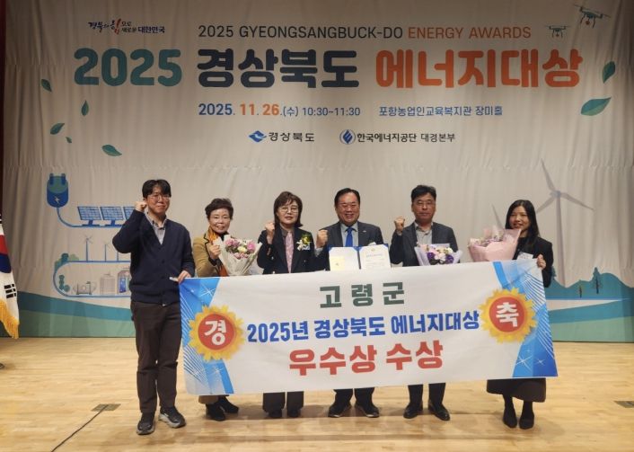 한방통신사 신유철기자 기자 | 고령군은 2025년 11월 26일 경상북도가 주최하고 한국에너지공단 대구경북지역본부가 주관한『2025년 경상북도 에너지대상』에서 우수 시군에 선정되는 성과를 거두며 상사업비 2천5백만원을 받았다.