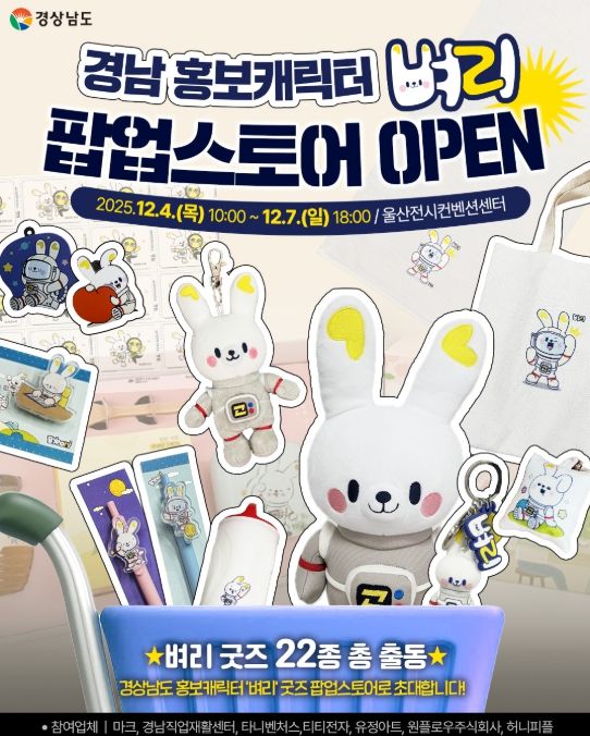 이번 팝업스토어는 ‘2025 울산문화박람회’의 경남·부산·울산 공동 섹션에서 운영되며, 지난해 5월 공개 이후 활발히 활동해 온 ‘벼리’를 전국에 알리는 계기가 될 전망이다. 경남도는 특히 이번 행사를 지역 소상공인과의 상생을 바탕으로 새로운 수익 창출 기회를 만드는 장으로 삼겠다는 계획이다.
