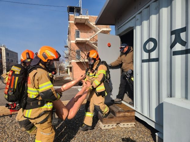 훈련은 컨테이너 암실 장애물 극복 훈련장에서 진행됐으며, 화재로 건물 내부 전원이 차단되고 농연이 확산된 상황을 가정해, 시야 확보가 제한된 상태에서 인명 구조와 신속대응팀(RIT) 투입 절차를 실전처럼 수행했다.
