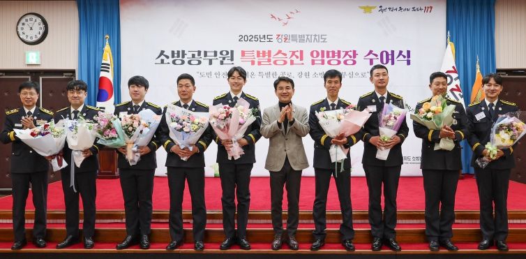 한방통신사 신유철기자 기자 | 강원특별자치도는 12월 3일 도청 신관 대회의실에서 도민의 생명과 안전을 지키는 데 헌신한 우수 소방공무원 8명에 대해 특별승진 임용장 수여식을 개최했다고 밝혔다.