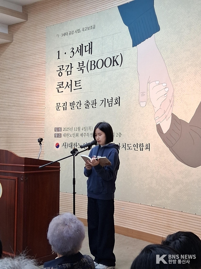 지난 2025년 12월 4일 (목) 10:30 대강당에서 [1,3세대 공감] 국고 보조금 지원 사업인 1세대 어르신들의 소중한 기억과 경험담과 3세대 초등학생들의 그림 일기를 모아서 150명이 참여해서 제주의 1,3세대 북(Book) 콘서트를 열었다.